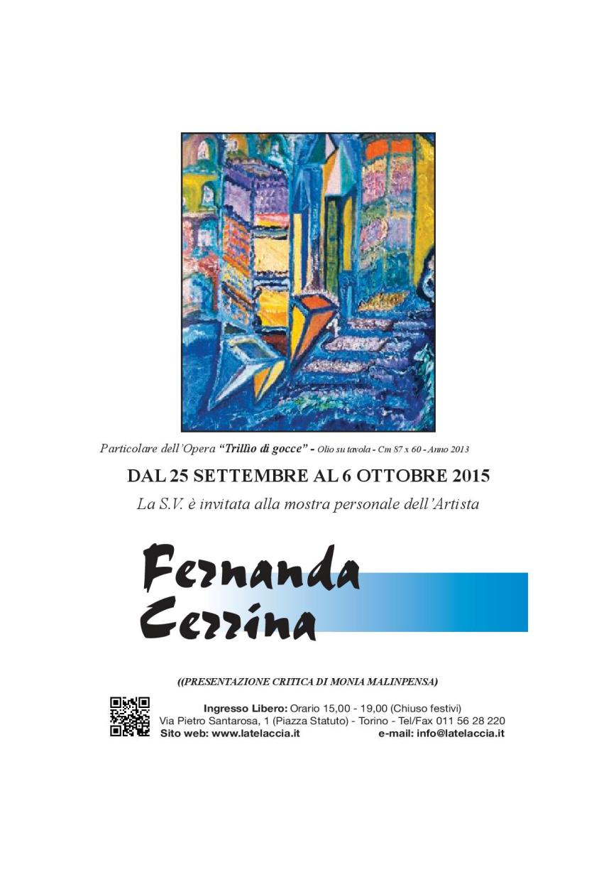 E’ un racconto istintivo, quello dell’artista Fernanda Cerrina, che denota una visione contemplativa assoluta, dove ogni particolare dell’opera acquista la vera essenza di un sogno poetico e di notevole ricchezza d’animo. La capacità di penetrare nella profondità intimistica dei suoi personaggi, è per l’artista, la sua ragione di fare arte. Sono immagini che si proiettano oltre la dimensione terrena, tra conscio e inconscio; esse rivelano il senso ed il potere espressivo del racconto. Spontaneità, vero sentimento ed impulso creativo risuonano costantemente nel suo iter pittorico con un’autenticità di comunicativa; è un simbolismo che nasce dalla visione di sogni capace di perforare l’animo e la mente dell’osservatore. Pittura istintiva, densa di grande respiro in cui si narrano storie di forte valenza emotiva che scandiscono il tempo e che scavano nel profondo. Il suo linguaggio comprende svariate sfaccettature e tematiche della vita, come gioie e tormenti ma anche simboli e segni che, nel loro insieme, vengono affrontati dalla Cerrina con rispetto verso l’umanità e messaggio di pace e amore. E’ in questo universo che l’artista Fernanda Cerrina realizza i dipinti: in perfetta simbiosi con la sua anima, sempre pulsante di umanità ed emozioni vere. Atmosfere palpitanti di ricordi, simboli, sogni e vissuto vivono in una coerenza di linguaggio e di originalità stilistica del tutto unica. La presenza costante ed affascinante della figura femminile, che sa continuamente rigenerarsi nell’opera, emerge con una intensa forza espressiva e con una notevole spiritualità all’insegna di una interpretativa completa e di una ricerca emozionale in grado di mostrare la fuga da qualsiasi schema razionale. La conoscenza e l’abilità della tecnica ad olio su tavola presenta un’estensione della materia densa e vigorosa di particolare stesura, mentre il tratto diretto, energico ed appassionato, altamente simbolico nell’opera, esalta una struttura interessante di creativa rivelazione. Il colore, illuminato da incisive accensioni e magistrali effetti cromatici, vive in un contesto coreografico di qualità che coincide con una resa formale dinamica, che conferma un’arte ricca di suggestiva senza tralasciare l’aspetto significativo. La Cerrina, avvalendosi di un concetto simbolico- lirico di estrema sensibilità, interpreta le sue immagini con un sentimento tattile ricco di pulsione interiore e di evidente valore contenutistico che invade il suo spazio pittorico. L’artista dipinge i suoi sogni e le sue visioni con uno stile unico e con una personalità dirompente; in ogni sua rappresentazione si trova una dimensione onirica di evidente comunicabilità in cui la realtà e la fantasia convergono in un’unica direzione che è quella di sviluppare inarrestabili sensazioni al fruitore. Attraverso la sua pittura più intima, ella fissa l’emozione nell’opera in un’elevazione spirituale autentica, ricca di introspezione e di una riflessiva non comune la cui espressione artistica, di importante arricchimento interiore, si fonde con un’innovativa impostazione scenografica.