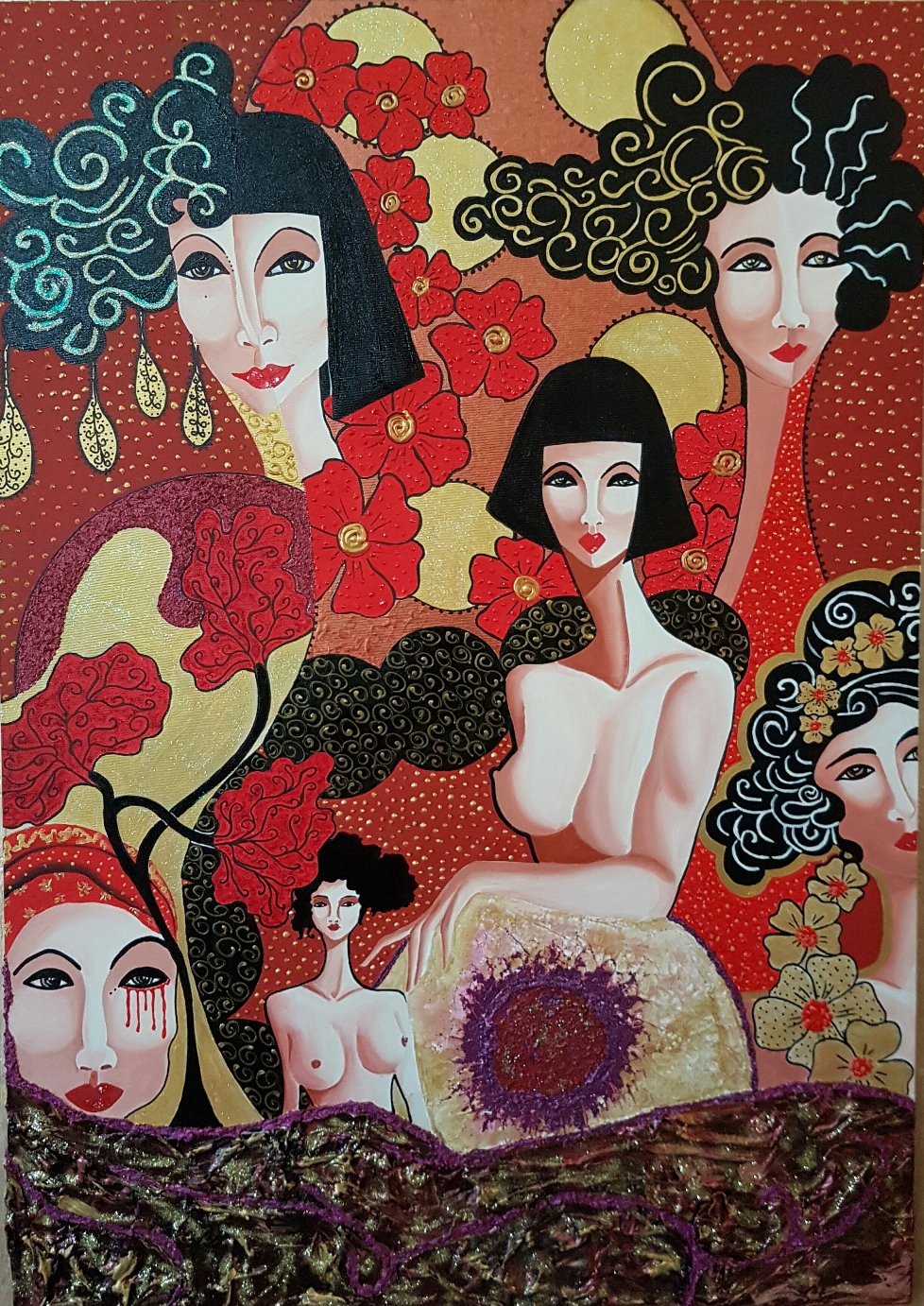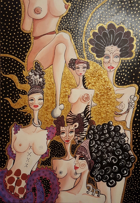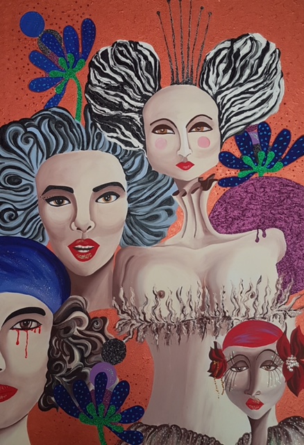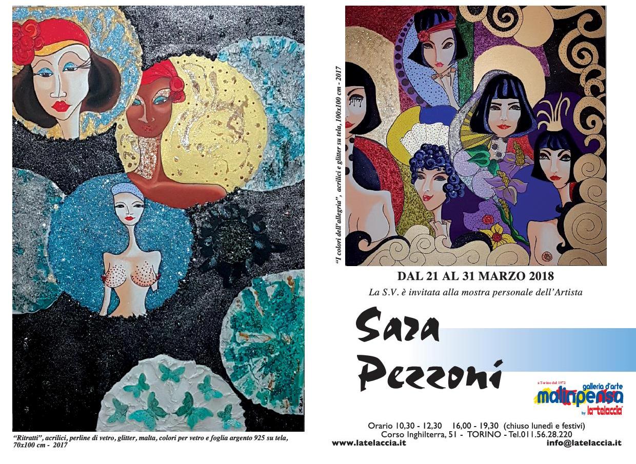 La Pezzoni, con fervida fantasia ed estrosa stesura dei colori acrilici, trasferisce sulla tela il suo stile e la sua padronanza tecnica che si caratterizzano per la sua personale visione formale e per la grande forza di linguaggio; è un’esperienza unica in costante movimento di racconto impostata sapientemente per girare sempre attorno alla vita e alla figura femminile. I volti, i corpi e i motivi figurali costituiscono il suo panorama pittorico di un universo del tutto femminile, dall’evidente sensibilità che sfugge a qualsiasi dialettica per via del suo originale e particolarissimo stile. La stesura della tecnica ad acrilico con interventi di malta, glitter, perline e vari elementi di rilievo evidenzia una dinamica strutturale ed una materializzazione di notevole sperimentalismo. La resa volumetrica, la spazialità cromatica e la laboriosità dei materiali sono il risultato di una ricercata costruzione e di una rappresentativa contemporanea autentica che si sviluppa pienamente con numerose sensazioni e consapevolezza dei mezzi. L’impatto estetico, il gioco scenografico e l’animazione simbolica raggiungono un’atmosfera affascinante, che stanno alla base dell’opera e che si fanno sostanza poetica di intima ricchezza umana. L’artista Sara Pezzoni riassume il proprio iter, sostanzialmente indipendente, con maestria, con un lessico chiaramente comprensibile e con un significativo aspetto simbolico. Ella pone in evidenza, con le sue potenti immagini, un’espressione cromatica ed una tecnica suggestiva ed appassionata dove il valido costrutto segnico – coloristico è denso di un decorativismo prezioso ricco di pathos ed espressione.